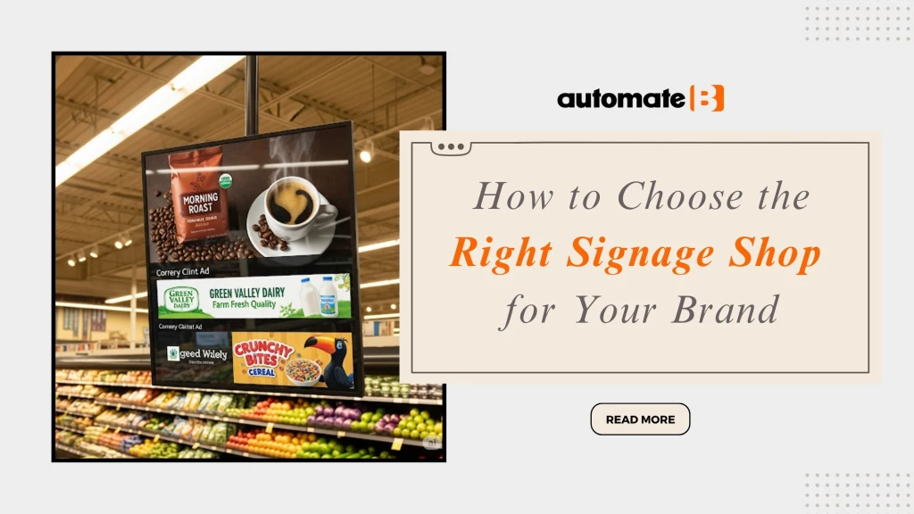 Selecting the right signage shop isn’t simply a business choice; it is a long-term commitment to your brand’s visual voice. Your signage partner should understand the brand you are building, recognize how to capture foot traffic and help reinforce recall of your brand. At automateB, we bring together creativity, strategy, and technology to deliver signage solutions that align your brand identity and business purpose. Let your simple signage do more than show, let it speak. Ready to elevate your brand representation? Let’s start the discussion.